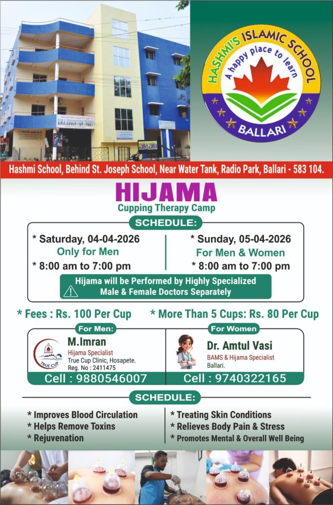Hashmi School, Behind St. Joseph School, Near Water Tank, Radio Park, Ballari – 583 104.